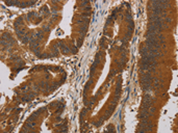 The image is immunohistochemistry of paraffin-embedded Human colon cancer tissue using P11856(IPO9 Antibody) at dilution 1/20. (Original magnification: ×200) |