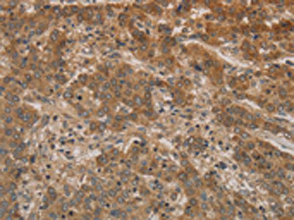 The image is immunohistochemistry of paraffin-embedded Human liver cancer tissue using P11856(IPO9 Antibody) at dilution 1/20. (Original magnification: ×200) |