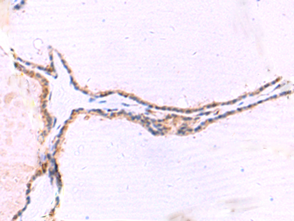 The image is immunohistochemistry of paraffin-embedded Human thyroid cancer tissue using P06759(IRGC Antibody) at dilution 1/30. (Original magnification: ×200) |