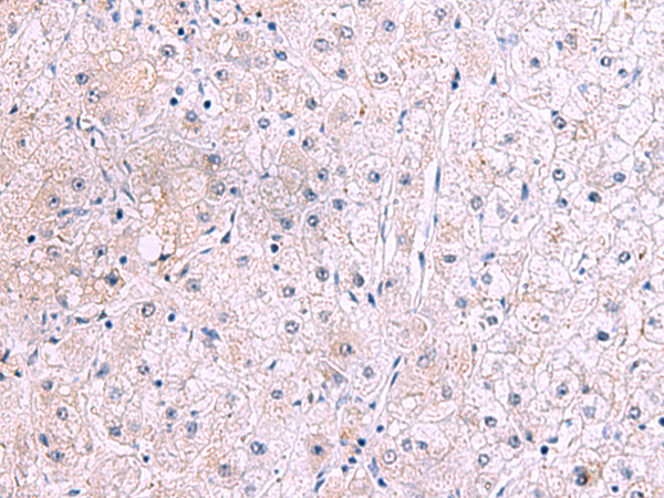 The image is immunohistochemistry of paraffin-embedded Human liver cancer tissue using P13645(IRX2 Antibody) at dilution 1/45. (Original magnification: ×200) |