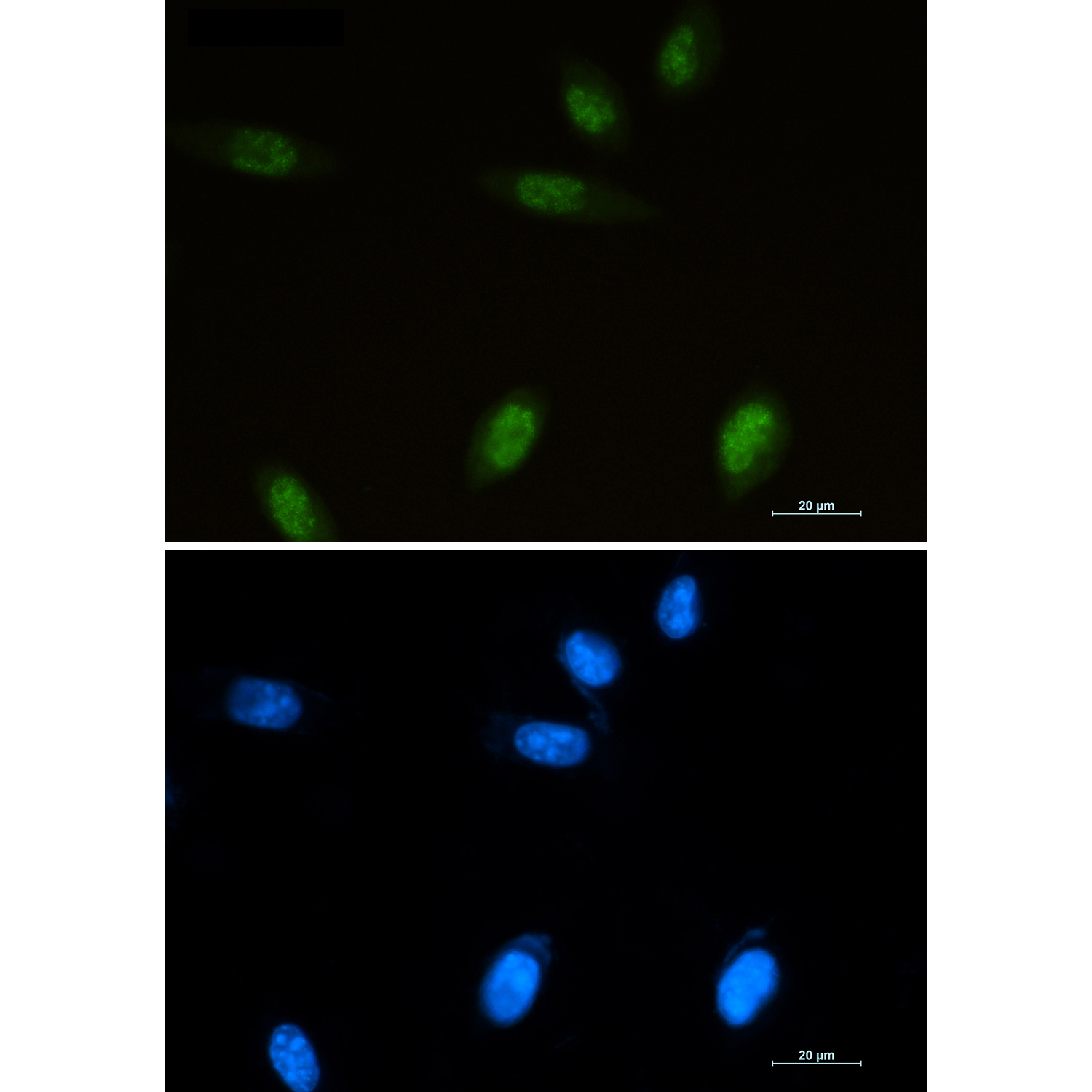 Immunocytochemistry analysis of Islet 1 (green) in SH-SY5Y using Islet 1 antibody,and DAPI(blue). |