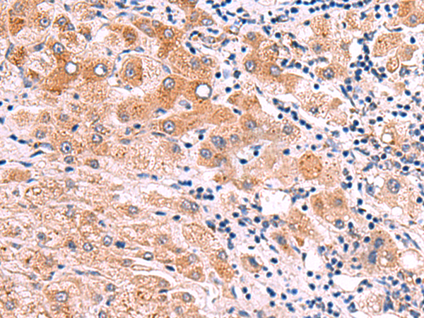 The image is immunohistochemistry of paraffin-embedded Human liver cancer tissue using P06770(ITGA11 Antibody) at dilution 1/75. (Original magnification: ×200) |