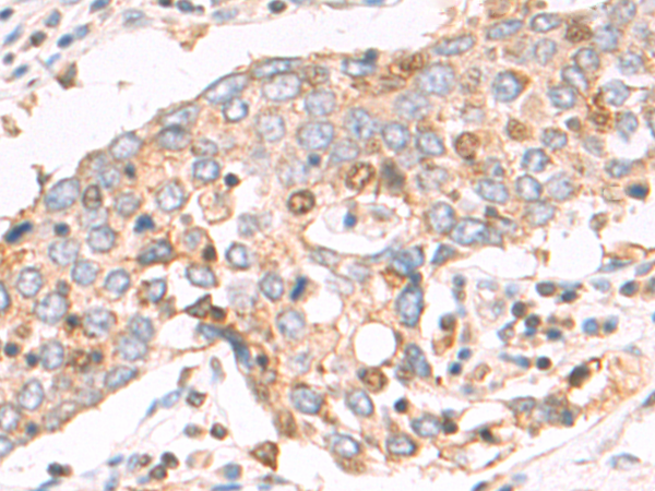 The image is immunohistochemistry of paraffin-embedded Human gastric cancer tissue using P04974(ITGA11 Antibody) at dilution 1/50. (Original magnification: ×200) |