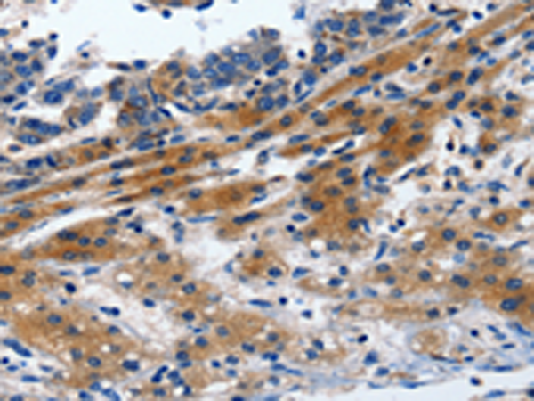 The image is immunohistochemistry of paraffin-embedded Human liver cancer tissue using P04084(ITGAL Antibody) at dilution 1/20. (Original magnification: ×200) |