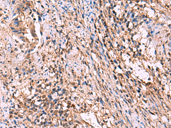 The image is immunohistochemistry of paraffin-embedded Human cervical cancer tissue using P13655(ITIH4 Antibody) at dilution 1/30. (Original magnification: ×200) |
