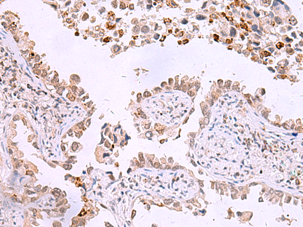 The image is immunohistochemistry of paraffin-embedded Human lung cancer tissue using P13637(ITPKC Antibody) at dilution 1/30. (Original magnification: ×200) |