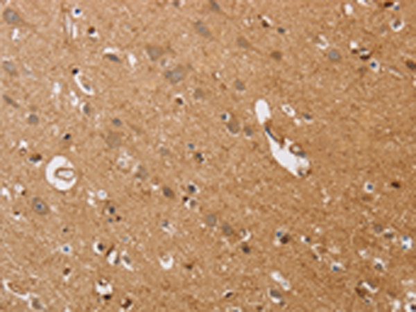 The image is immunohistochemistry of paraffin-embedded Human brain tissue using P11866(ITPR1 Antibody) at dilution 1/40. (Original magnification: ×200) |
