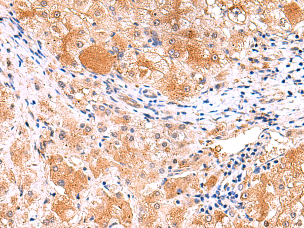 The image is immunohistochemistry of paraffin-embedded Human liver cancer tissue using P06751(ITSN2 Antibody) at dilution 1/40. (Original magnification: ×200) |