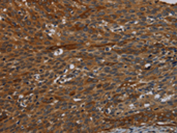 The image is immunohistochemistry of paraffin-embedded Human cervical cancer tissue using P12029(IVL Antibody) at dilution 1/50. (Original magnification: ×200) |