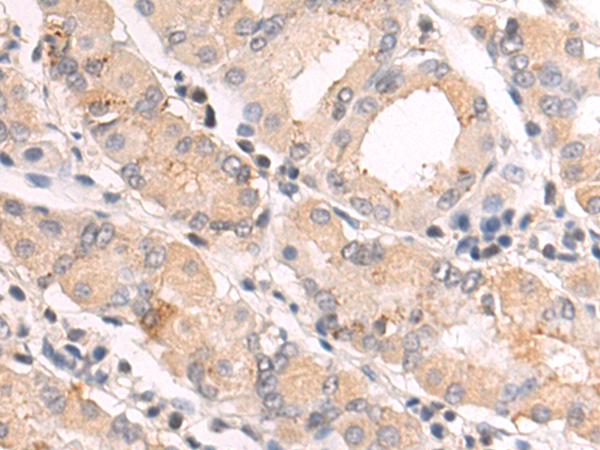 The image is immunohistochemistry of paraffin-embedded Human gastric cancer tissue using P05142(IVL Antibody) at dilution 1/50. (Original magnification: ×200) |