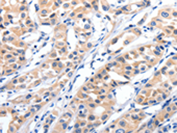 The image is immunohistochemistry of paraffin-embedded Human lung cancer tissue using P04054(JAK2 Antibody) at dilution 1/35. (Original magnification: ×200) |