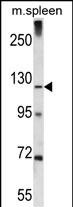 K1324 Antibody (C-term) (Cat. #P31105) western blot analysis in mouse spleen tissue lysates (35ug/lane).This demonstrates the K1324 antibody detected the K1324 protein (arrow). |