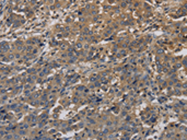 The image is immunohistochemistry of paraffin-embedded Human liver cancer tissue using P11869(KCNA7 Antibody) at dilution 1/40. (Original magnification: ×200) |