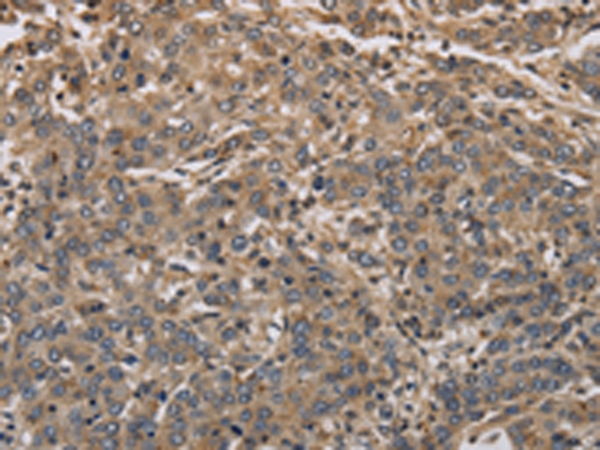 The image is immunohistochemistry of paraffin-embedded Human liver cancer tissue using P04988(KCNA7 Antibody) at dilution 1/40. (Original magnification: ×200) |