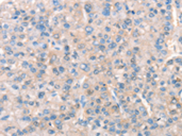 The image is immunohistochemistry of paraffin-embedded Human liver cancer tissue using P11726(KCNB1 Antibody) at dilution 1/30. (Original magnification: ×200) |