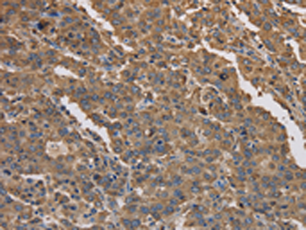 The image is immunohistochemistry of paraffin-embedded Human liver cancer tissue using P04990(KCNG1 Antibody) at dilution 1/40. (Original magnification: ×200) |
