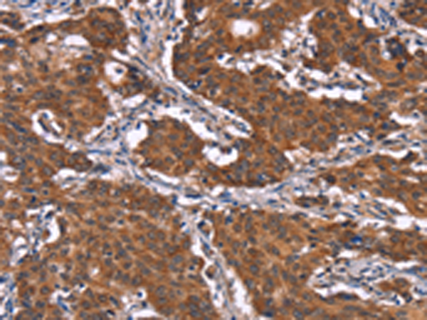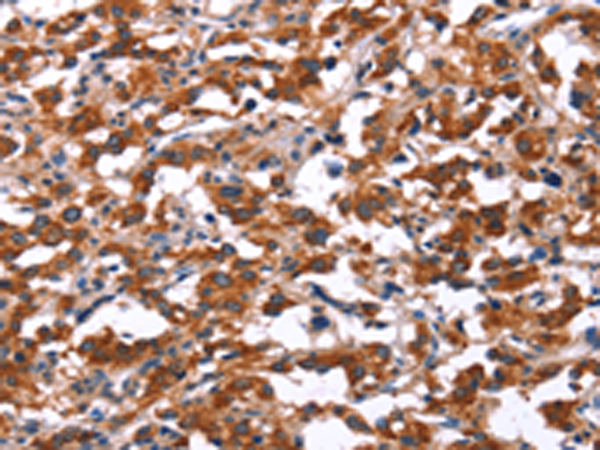 The image is immunohistochemistry of paraffin-embedded Human gastric cancer tissue using P11788(KCNJ9 Antibody) at dilution 1/15. (Original magnification: ×200) |