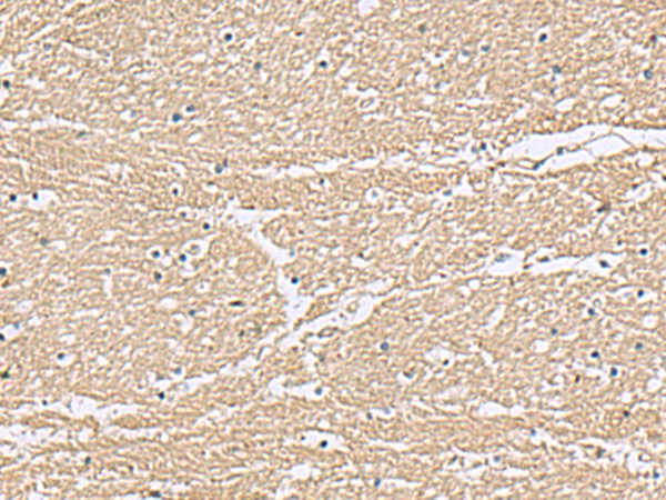 The image is immunohistochemistry of paraffin-embedded Human brain tissue using P06808(KCTD7 Antibody) at dilution 1/55. (Original magnification: ×200) |