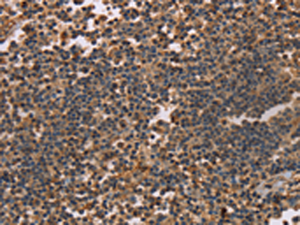 The image is immunohistochemistry of paraffin-embedded Human tonsil tissue using P11888(KLK14 Antibody) at dilution 1/40. (Original magnification: ×200) |