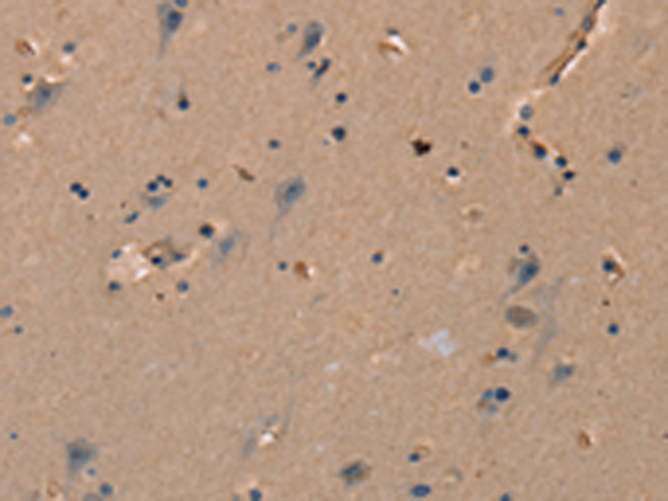 The image is immunohistochemistry of paraffin-embedded Human brain tissue using P11888(KLK14 Antibody) at dilution 1/40. (Original magnification: ×200) |