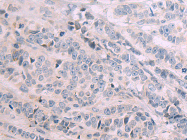 The image is immunohistochemistry of paraffin-embedded Human breast cancer tissue using P13805(KLK15 Antibody) at dilution 1/50. (Original magnification: ×200) |