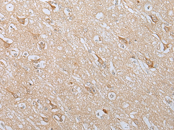 The image is immunohistochemistry of paraffin-embedded Human brain tissue using P05736(KLRC2 Antibody) at dilution 1/30. (Original magnification: ×200) |
