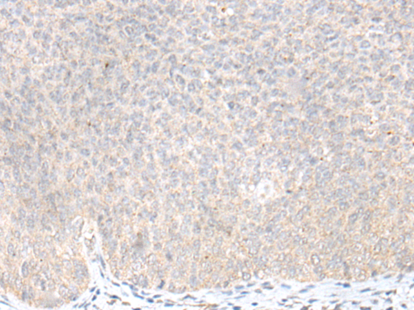 The image is immunohistochemistry of paraffin-embedded Human cervical cancer tissue using P12606(KLRC3 Antibody) at dilution 1/20. (Original magnification: ×200) |