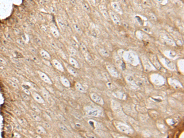 The image is immunohistochemistry of paraffin-embedded Human esophagus cancer tissue using P12702(KNL1 Antibody) at dilution 1/20. (Original magnification: ×200) |