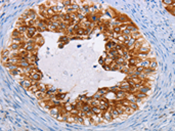 The image is immunohistochemistry of paraffin-embedded Human cervical cancer tissue using P06962(KRT13 Antibody) at dilution 1/35. (Original magnification: ×200) |