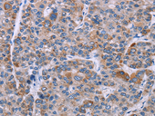 The image is immunohistochemistry of paraffin-embedded Human liver cancer tissue using P03819(KRT14 Antibody) at dilution 1/20. (Original magnification: ×200) |