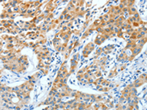 The image is immunohistochemistry of paraffin-embedded Human lung cancer tissue using P07093(KRT40 Antibody) at dilution 1/30. (Original magnification: ×200) |