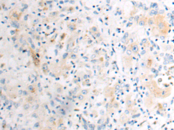 The image is immunohistochemistry of paraffin-embedded Human liver cancer tissue using P04069(LAIR2 Antibody) at dilution 1/60. (Original magnification: ×200) |