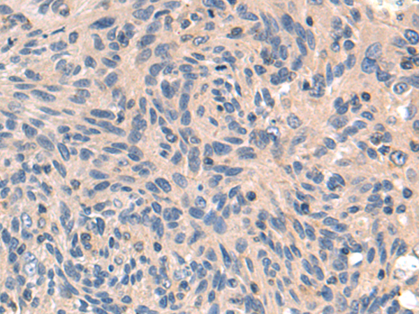 The image is immunohistochemistry of paraffin-embedded Human cervical cancer tissue using P13810(LAMC1 Antibody) at dilution 1/50. (Original magnification: ×200) |