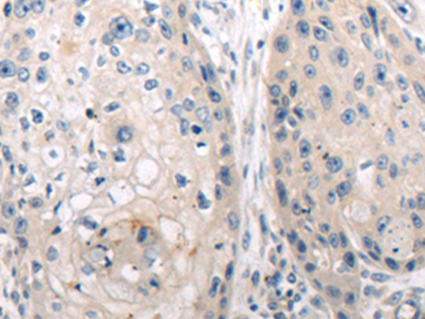 The image is immunohistochemistry of paraffin-embedded Human esophagus cancer tissue using P13810(LAMC1 Antibody) at dilution 1/50. (Original magnification: ×200) |