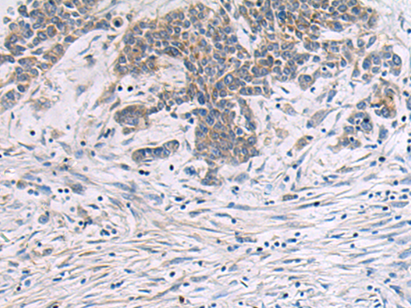 The image is immunohistochemistry of paraffin-embedded Human colorectal cancer tissue using P03867(LAMP3 Antibody) at dilution 1/40. (Original magnification: ×200) |