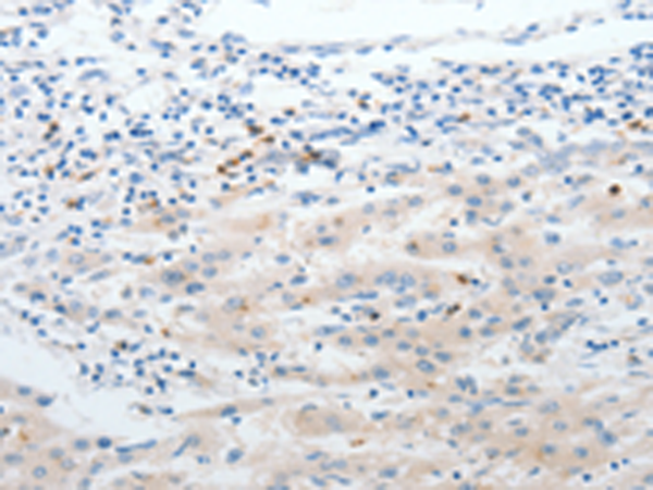 The image is immunohistochemistry of paraffin-embedded Human liver cancer tissue using P04380(LCN2 Antibody) at dilution 1/50. (Original magnification: ×200) |