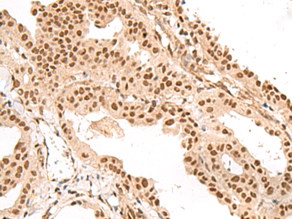 The image is immunohistochemistry of paraffin-embedded Human thyroid cancer tissue using P13439(LGALS4 Antibody) at dilution 1/35. (Original magnification: ×200) |