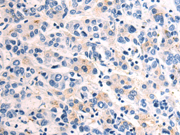 The image is immunohistochemistry of paraffin-embedded Human liver cancer tissue using P04072(LHB Antibody) at dilution 1/50. (Original magnification: ×200) |