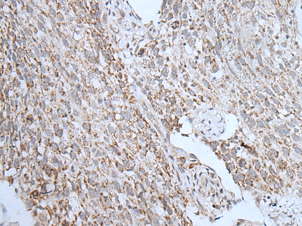 The image is immunohistochemistry of paraffin-embedded Human esophagus cancer tissue using P05923(LHCGR Antibody) at dilution 1/20. (Original magnification: ×200) |