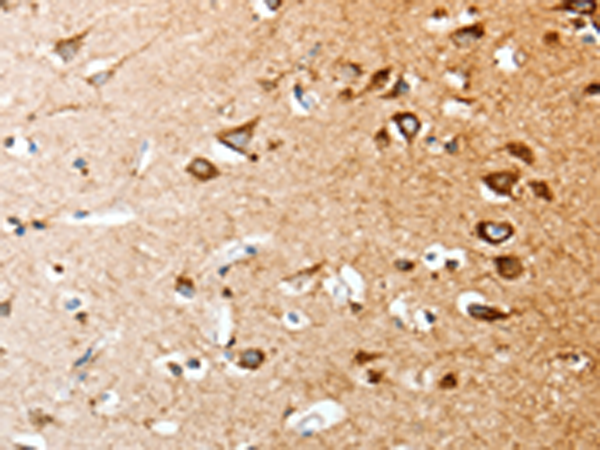The image is immunohistochemistry of paraffin-embedded Human brain tissue using P11079(LPAR4 Antibody) at dilution 1/20. (Original magnification: ×200) |