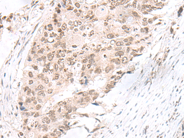 The image is immunohistochemistry of paraffin-embedded Human colorectal cancer tissue using P04265(LPCAT4 Antibody) at dilution 1/30. (Original magnification: ×200) |