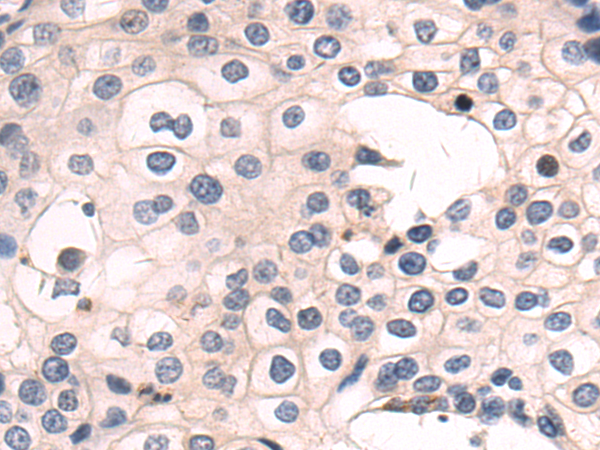 The image is immunohistochemistry of paraffin-embedded Human cervical cancer tissue using P04079(LRIG1 Antibody) at dilution 1/50. (Original magnification: ×200) |