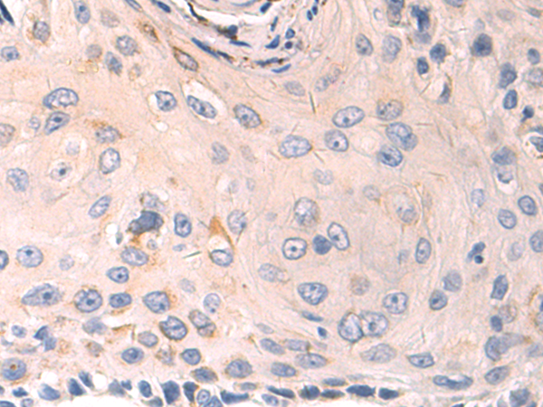 The image is immunohistochemistry of paraffin-embedded Human esophagus cancer tissue using P04079(LRIG1 Antibody) at dilution 1/50. (Original magnification: ×200) |