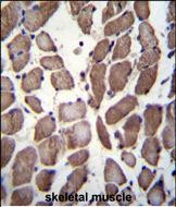 LRP12 Antibody (C-term) (Cat. #P32573)immunohistochemistry analysis in formalin fixed and paraffin embedded human skeletal muscle followed by peroxidase conjugation of the secondary antibody and DAB staining.This data demonstrates the use of LRP12 Antibody (C-term) for immunohistochemistry. Clinical relevance has not been evaluated. |