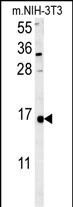 LSM4 Antibody (Center) (Cat. #P30770) western blot analysis in mouse NIH-3T3 cell line lysates (35ug/lane).This demonstrates the LSM4 antibody detected the LSM4 protein (arrow). |