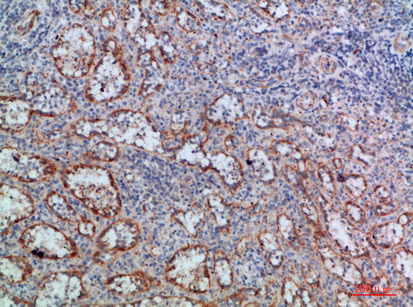 Immunohistochemical analysis of paraffin-embedded Human tonsils using LTB antibody.High-pressure and temperature Sodium Citrate pH 6.0 was used for antigen retrieval. |