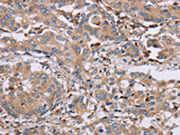 The image is immunohistochemistry of paraffin-embedded Human liver cancer tissue using P04318(MAGEA3 Antibody) at dilution 1/50. (Original magnification: ×200) |
