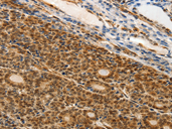 The image is immunohistochemistry of paraffin-embedded Human thyroid cancer tissue using P11373(MAP1A Antibody) at dilution 1/25. (Original magnification: ×200) |