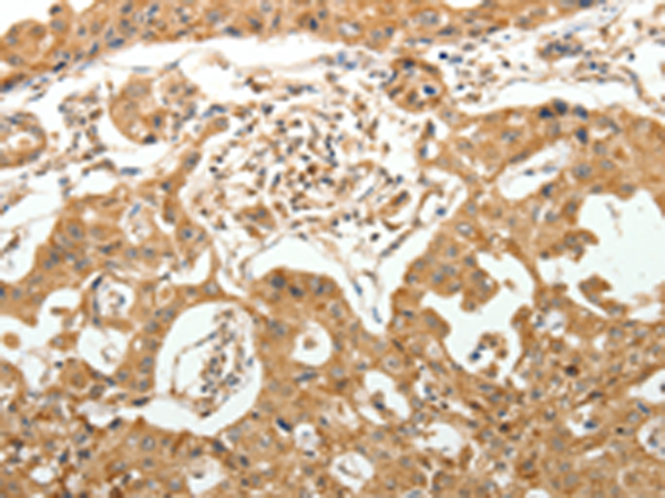The image is immunohistochemistry of paraffin-embedded Human lung cancer tissue using P11374(MAP1B Antibody) at dilution 1/40. (Original magnification: ×200) |