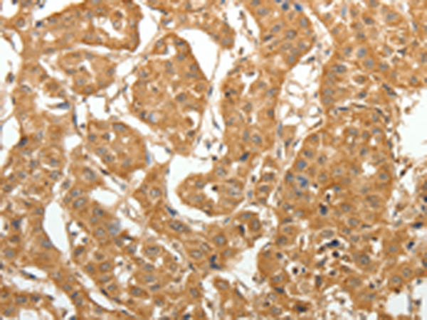 The image is immunohistochemistry of paraffin-embedded Human lung cancer tissue using P04484(MAP1B Antibody) at dilution 1/60. (Original magnification: ×200) |